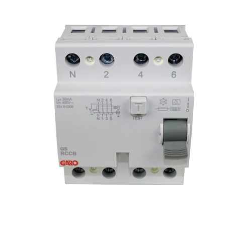 En jordfelsbrytare ser ut som en stor dvärgbrytare och tar upp 4 modulplatser i din elcentral. Den har också en testknapp som skall användas var 6:e månad. Här är lite bilder på hur en jordfelsbrytare kan se ut. Det kan stå saker som 0,03A eller 30mA på den och RCCB.